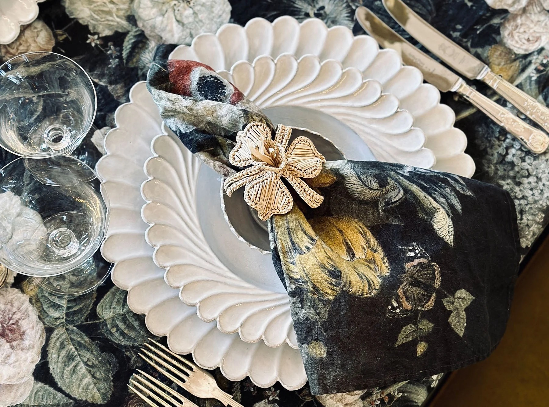With reverence to the golden age of the Dutch Masters, the palette of this design is deep and deliberate to bring a little drama to the table.