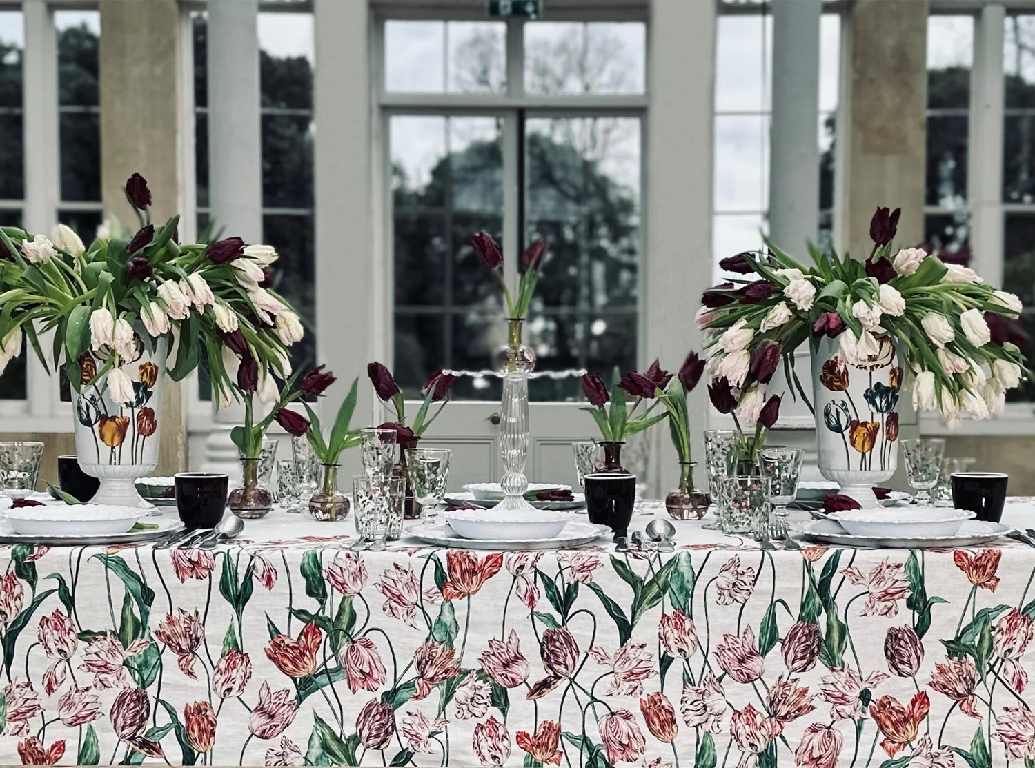 With rich, complex colours and elaborately curved and crimped petals that give each flower a distinctive character, this tablecloth explores the intriguing nature of the Tulip, a flower that has continued to beguile with its beauty, throughout the centuries.